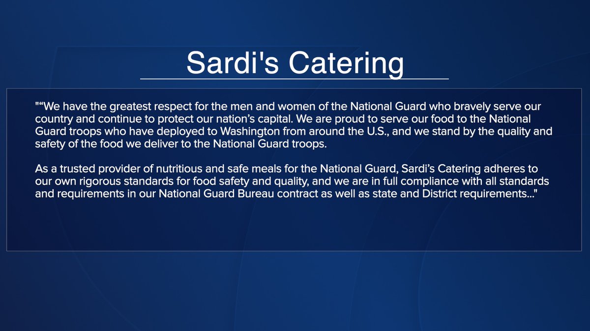 New: Statement (via spokesperson) from Sardi's Catering, the company providing meals to the National Guard deployed in DC.pic.twitter.com/1jL6FOpTXL