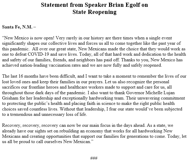 New Mexico is now fully and safely reopened!
