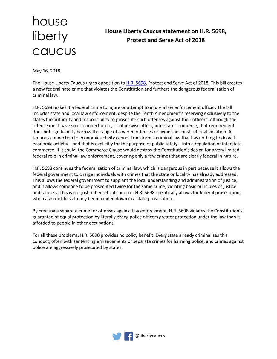 VOTE ALERT: HLC statement on #HR5698, Protect and Serve Act of 2018pic.twitter.com/hckm0gU4iG