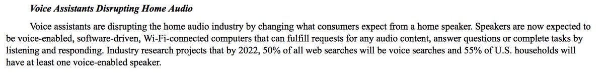 "Voice assistants are disrupting the home audio industry by changing what consumers expect from a home speaker. Speakers are now expected to be voice-enabled.. by 2022 50% of web searches will be voice searches & 55 U.S. households will have voice-enabled speaker”—@Sonos #SonosS1pic.twitter.com/sJE3NMYlF7