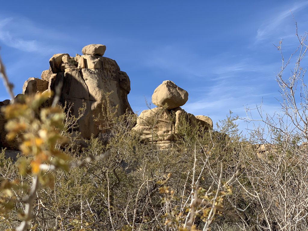 Precarious rock structure, field research in stunning Joshua Tree, California. Pre-Colombian petroglyph noted on one formation confirms approximate epoch.pic.twitter.com/F0zlqrbaig