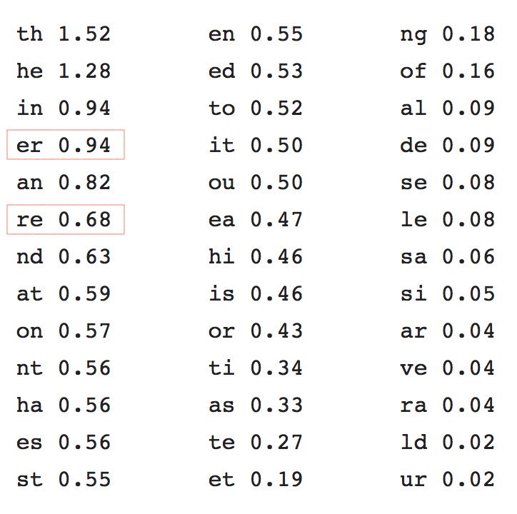 For decades I used the Bigram Frequency algorithm in my #VoiceFirst AI. One night I noticed that “er” and “re” combined where in the highest use. They are next to each other on the type bar.