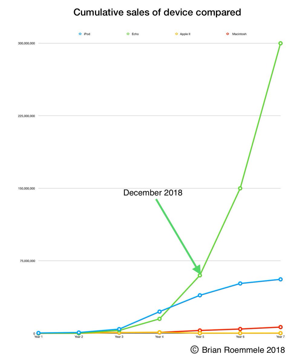 The growth chart I showed during my VC symposiums for the last few years starts to make much more sense today as the Alexa App in the iOS store and Android store are #1 in their categories. To achieve this #1 momentum it is implicit millions were sold in a short period—MILLIONS.pic.twitter.com/n7hnfa82EC