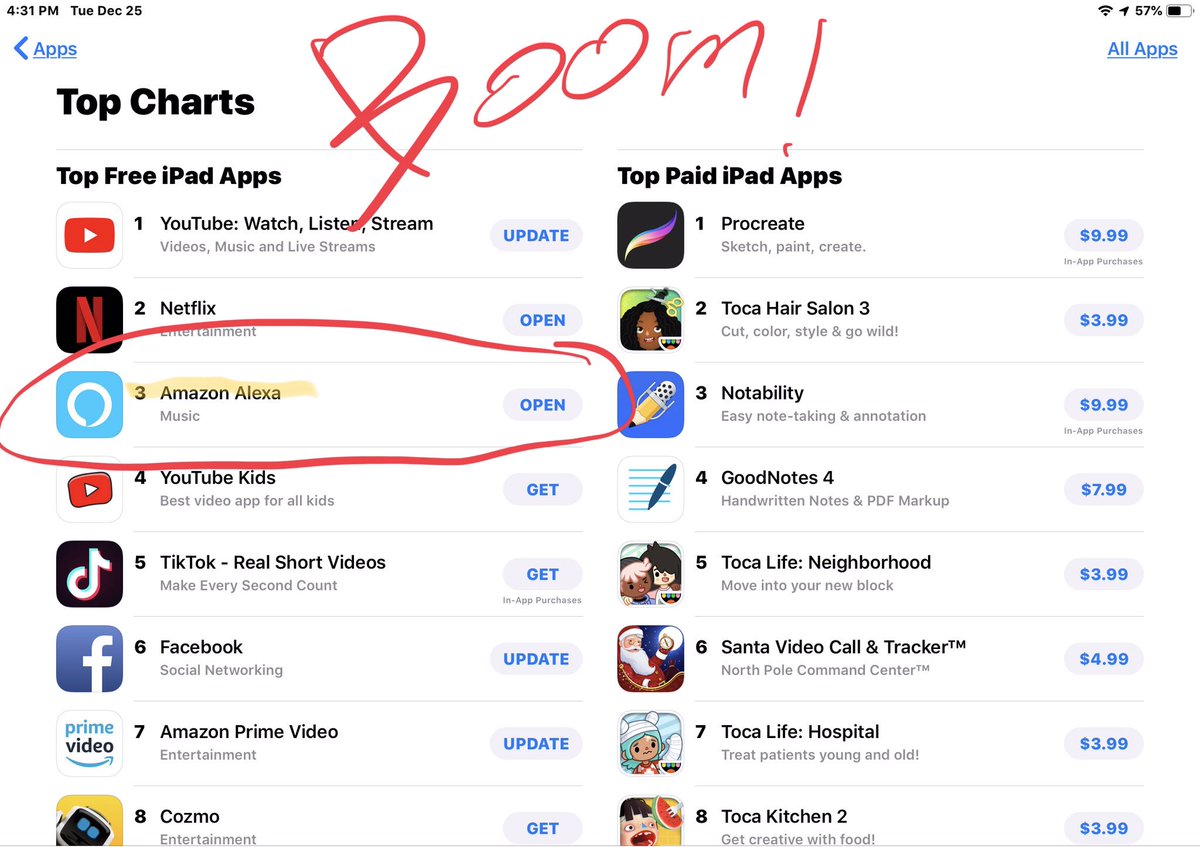 As I 🔮 The Amazon Alexa App will be in the top 5 most popular free app downloads on the iOS App Store by January 3rd, 2019. Sorry folks I was off. Today December 25th, 2018 it is number 1 iPhone app and number 3 iPad app. 3rd year in a row. This is a #VoiceFirst revolution!pic.twitter.com/CKwMw6FTQT