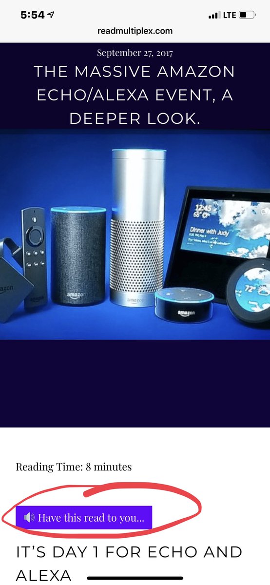 The new #AlexaBlueprints advocate the talking news/blog concept I pioneered quite some time ago and used it to great effect on @ReadMultiplex (on hiatus). I found that an incredible 71% pressed the “have this read to you button”. I hope #AlexaBlueprints makes it Ubiquitous. pic.twitter.com/ukKwMAB11D