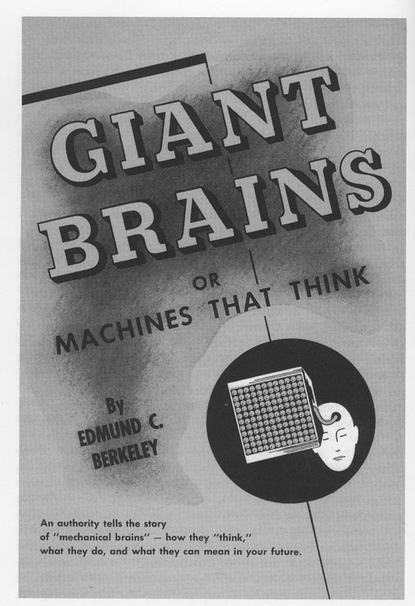 A friend at The Institute Of Advanced Study at Princeton gave me this captivating 1949 book: Giant Brains, or Machines That Think by Edmund Berkeley in the 1970s.