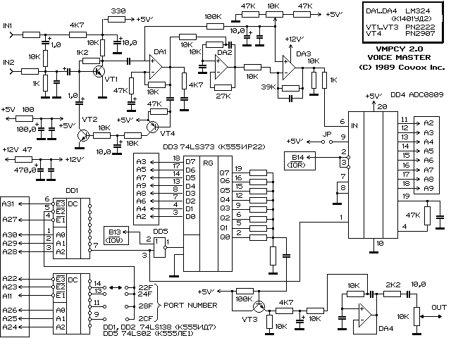 In the 1980s I built quite a few passive resistive elements using resistor ladder ADC/DCA. Here is one of the schematics I helped modify from Covox Voice Master. This was one of the first widely available voice recognition systems available. This is the exact unit @Nasa tested.pic.twitter.com/xwcooaypaO