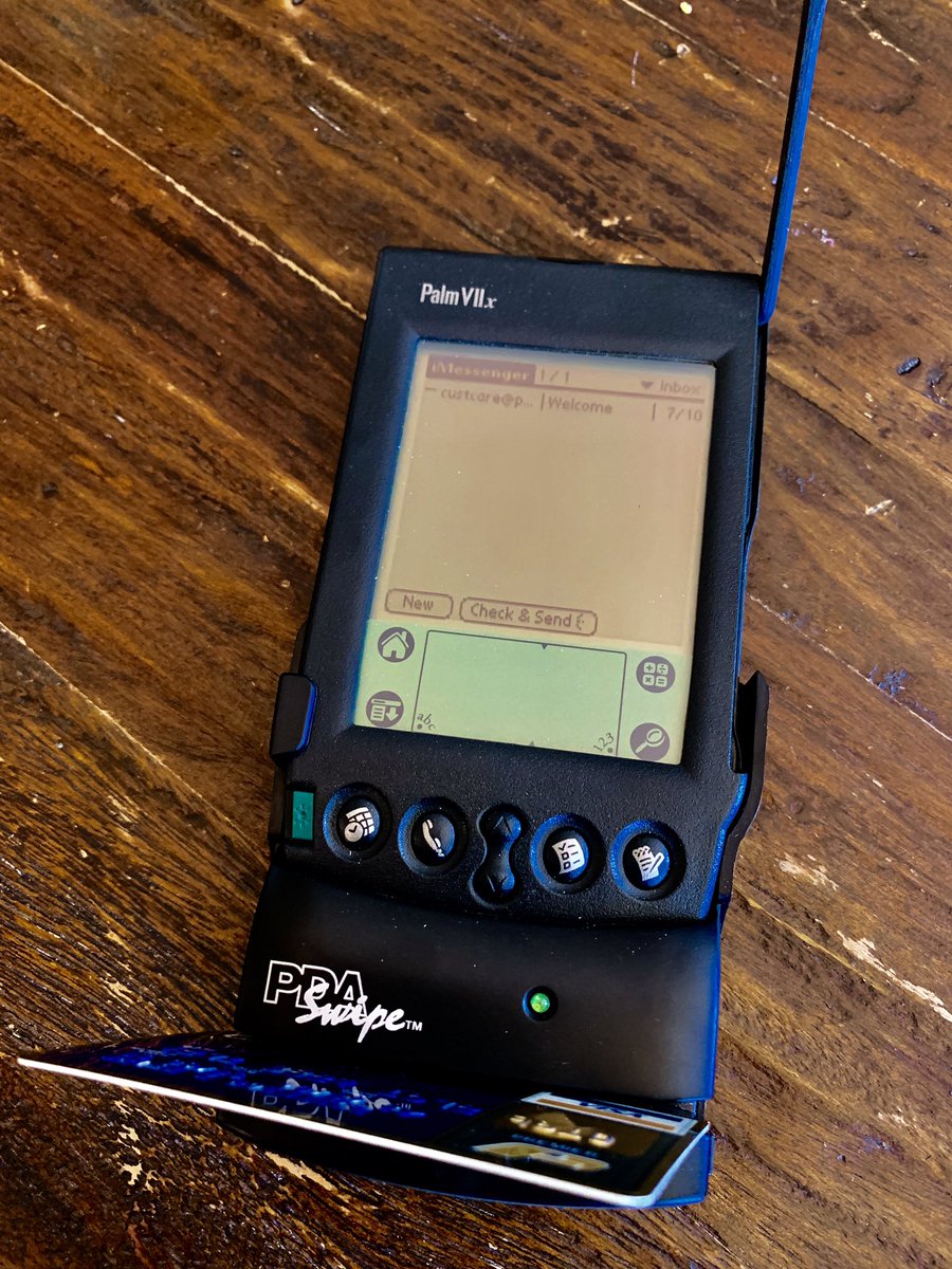 In 2001 I built the first wireless full POS system on Palm VII with my card reader. It included inventory management, barcode reader, ID/age verification, table restaurant payments and ordering. We sold 1000s to Hertz and TGI Friday’s. Still does more than any system today.pic.twitter.com/KQ2MqFtYPD
