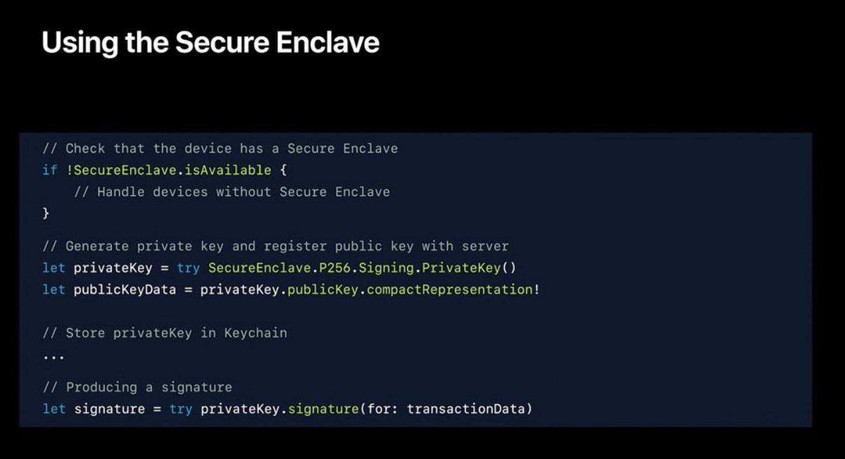Meet Apple CryptoKit. A big upgrade to iOS 13 that allows access to the Secure Enclave. SHA256 keys generated, stored and retrieved. Would make CryptoKit a wonderful basis for a Bitcoin wallet. 🤫🧐 Who would have every have guessed that?pic.twitter.com/fvwzNbZboB