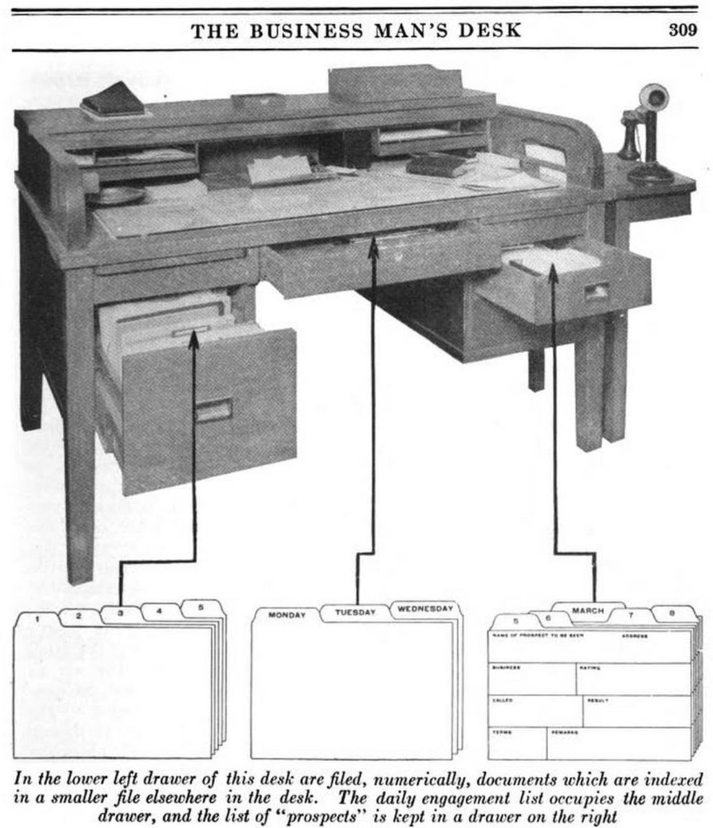 It is very easy to forget the complications of the business desk. This was a fundamental business tool of the industrial revolution. There were 1000s of empirical studies on efficiency and utility. Here is the example of old fashioned vs new the new 1912 version.pic.twitter.com/LdkkJ4fa1d