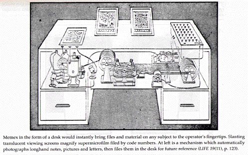 Mike, thanks for asking. I saw a working model of a MEMEX in Princeton. It did not look like the illustrations and used magnetic tape, microfilm and a very large computer. It was part of bigger government funded project. The Voice interface was working in a very crude way.