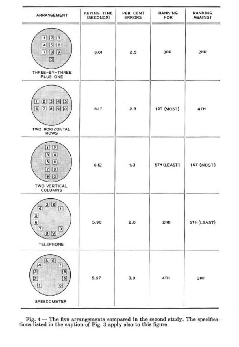 The human factors research that produced the telephone keypad layout we use today had 1000s of hours of research studying 1000s of people. It sounds insane today, because no one does deep human factors research anymore. This spectacular research has been proven right by—time. https://twitter.com/BrianRoemmele/status/1185274222722969601 …pic.twitter.com/2LXAEi6LnT