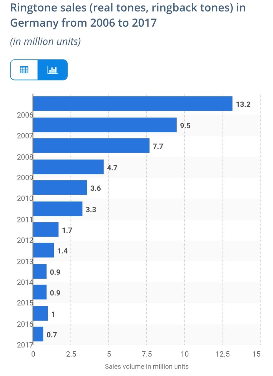 Just found a graph from 2019. So yes seems like Ringtone market really suffered during the smartphone decade.pic.twitter.com/5y7yWVLsfD