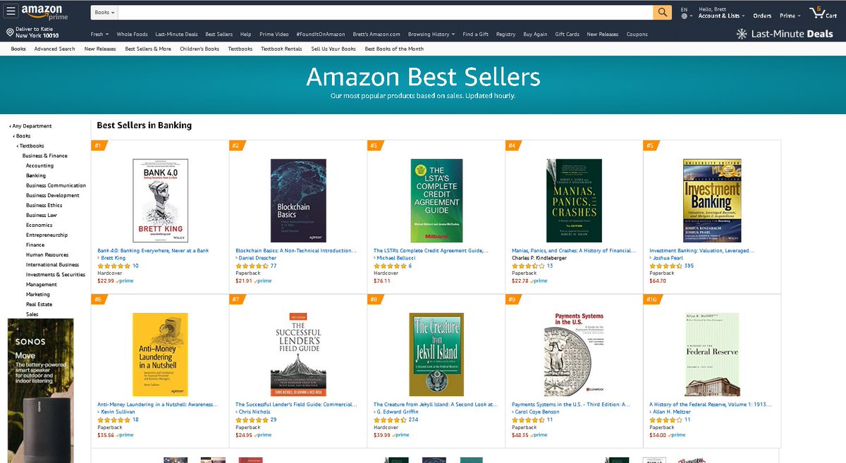 Thank you, thank you, thank you - #Bank4.0 still in the #1 slot for @amazon Bestsellers in Banking books, fully 1 year after release! Thanks to @Chris_Skinner, @dgwbirch, @JoAnnBarefoot, @DuenaBlomstrom, @mikejjordan74, @BrianRoemmele, @SpirosMargaris, @JimMarous for your helppic.twitter.com/SeDt2lx0s2
