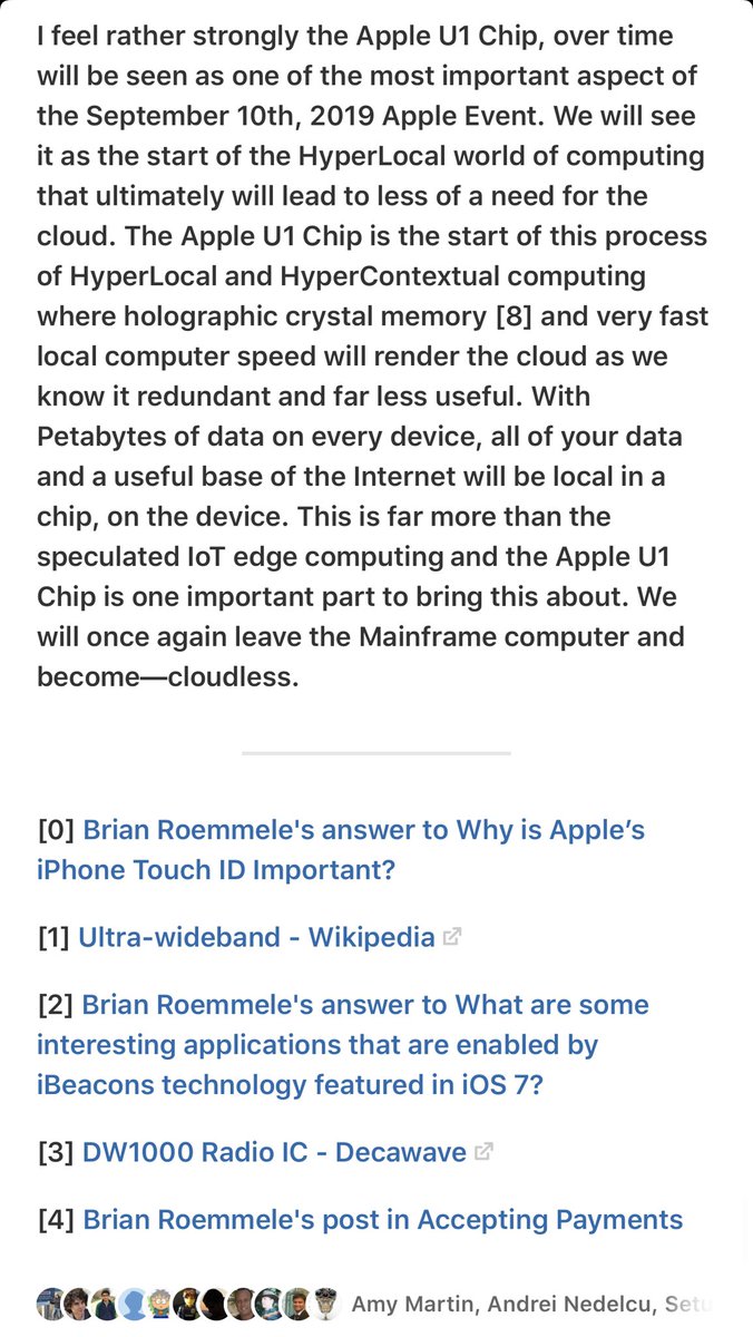 A few minutes after the Apple U1 UWB chip was mentioned I answered this question on @Quora: https://qr.ae/TWKtWT