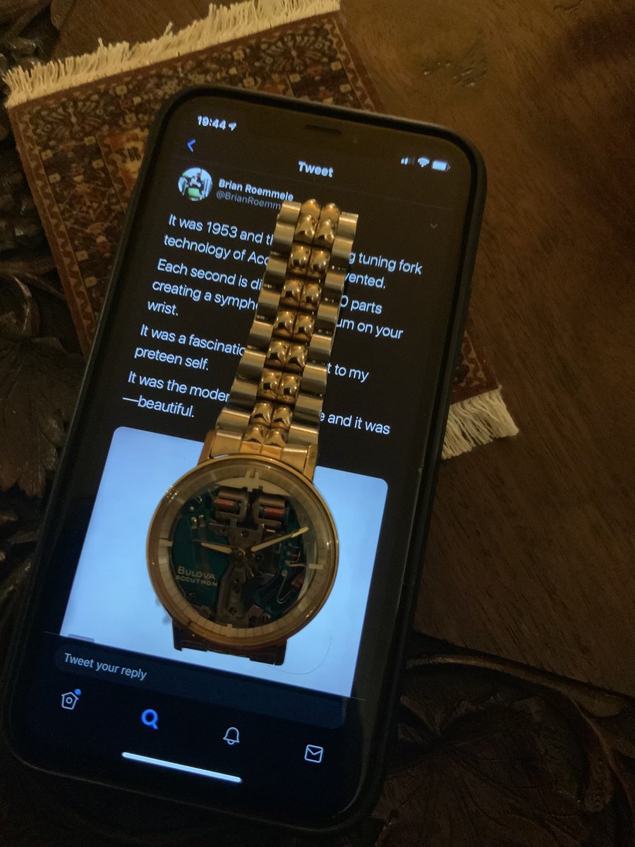 It was 1953 and the astonishing tuning fork technology of Accutron was invented. Each second is divided into 360 parts creating a symphonic 360hz hum on your wrist. It was a fascination and comfort to my preteen self. It was the modern sound of time and it was—beautiful.pic.twitter.com/jGOI41b64V