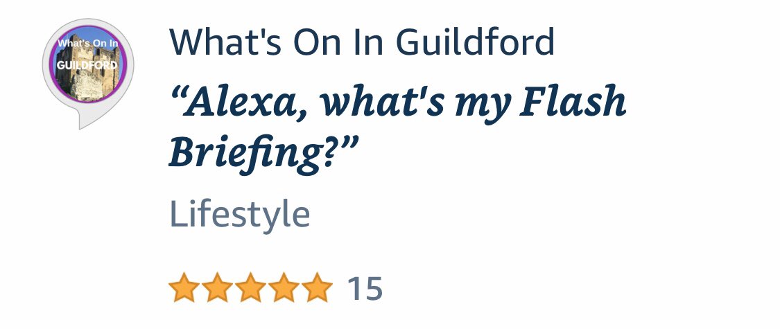 WHAT’S ON IN GUILDFORD - the daily events guide for #Surrey, which is the second highest-rated #flashbriefing in the UK charts.pic.twitter.com/aHNugsW3oB