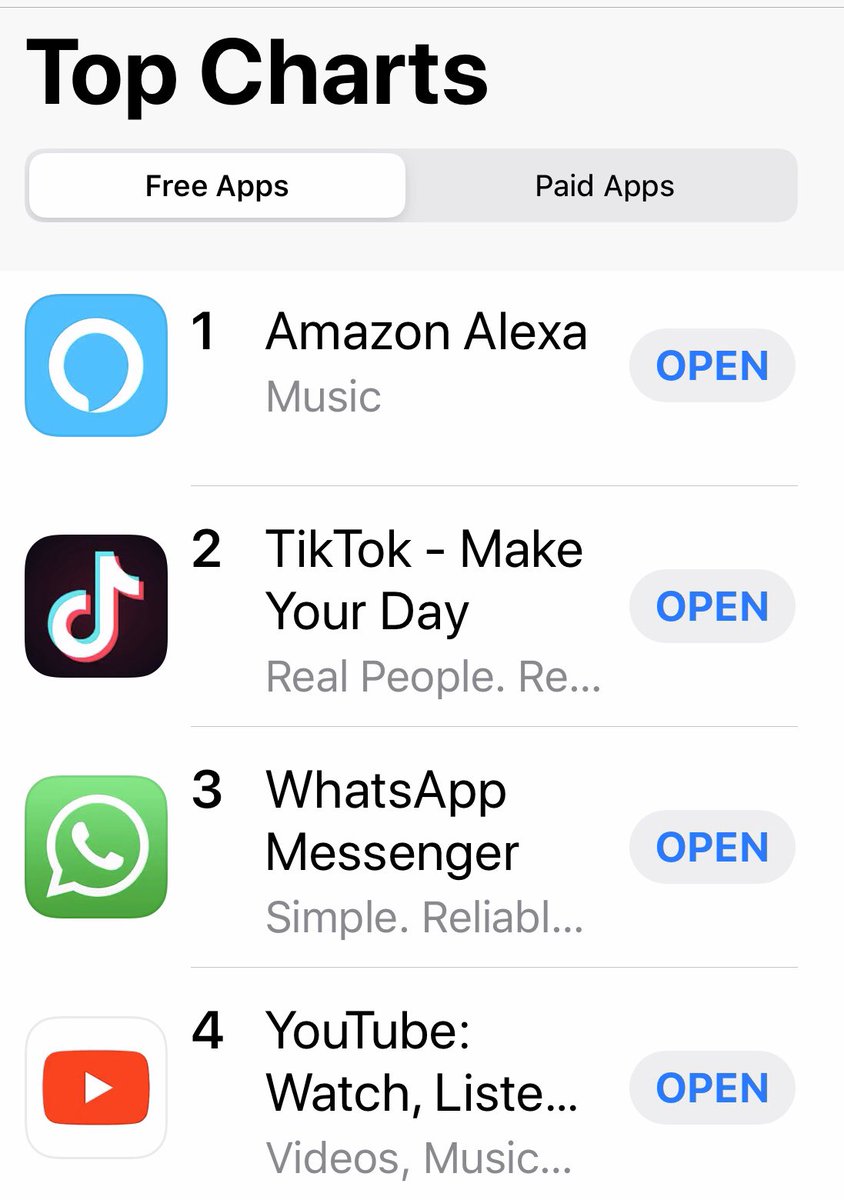 Again, the top free app in the Apple App Store this Christmas is for @Amazon #Alexa.pic.twitter.com/bbT1uxGcr6
