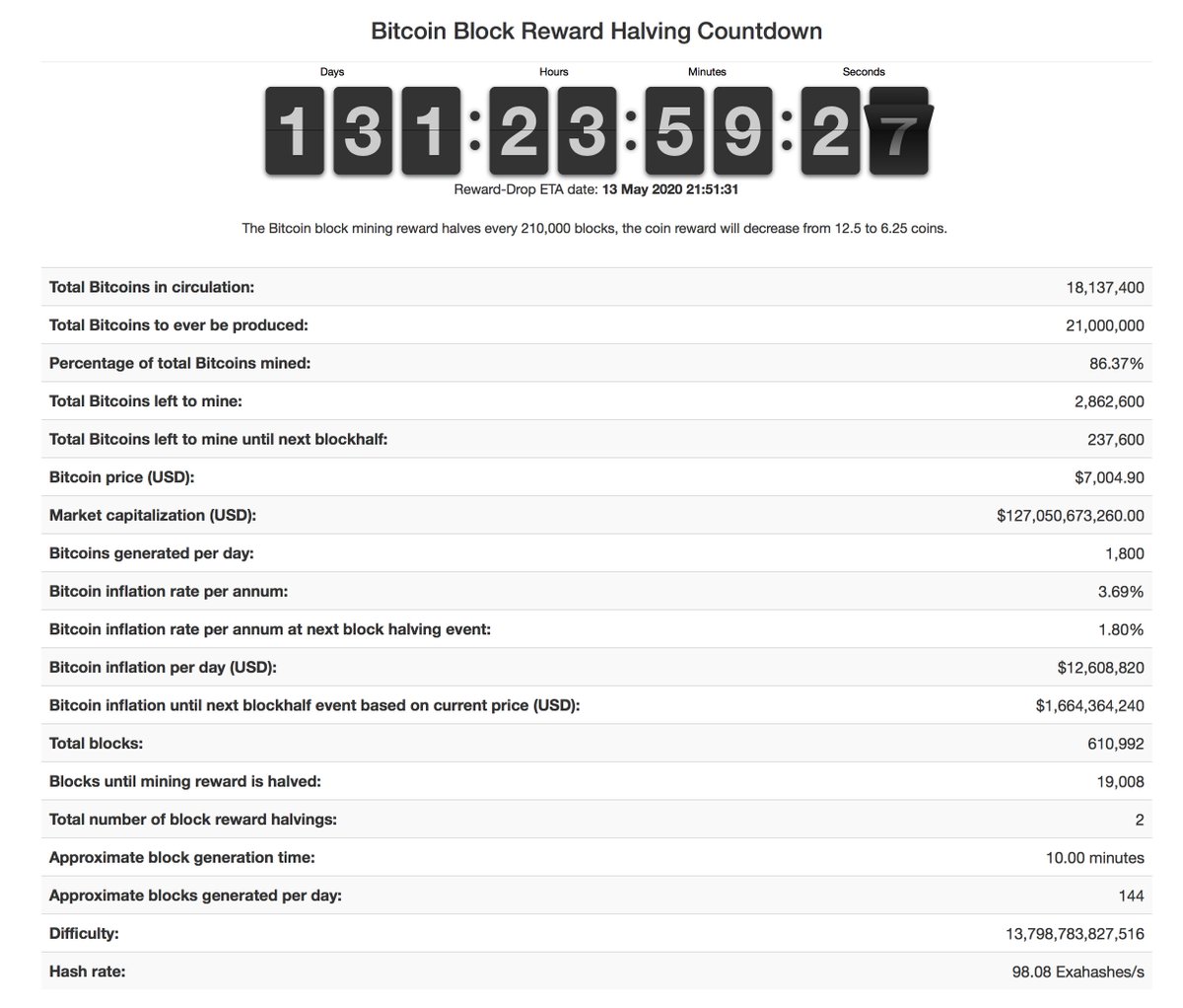 On May 13th, 2020 @ 21:51:31 Bitcoin will once again cut in half the “rewards” miners will earn when successfully solving the calculations needed to build the next block in the blockchain. This is what happened the last few halvings. This will be a very interesting year...pic.twitter.com/5cKrNSoV30