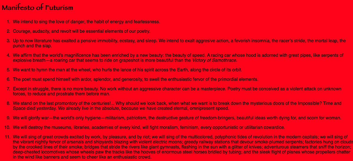 What are some examples of good founding manifestos? Things like the Program of the Staatliche Bauhaus: http://monoskop.org/images/2/20/Gropius_Walter_1919_1981_Program_of_the_Staatliche_Bauhaus_in_Weimar.pdf …