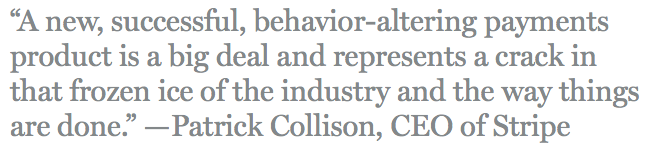 One of the most prophetic and astute quotes about the payments industry ever, from @patrickc