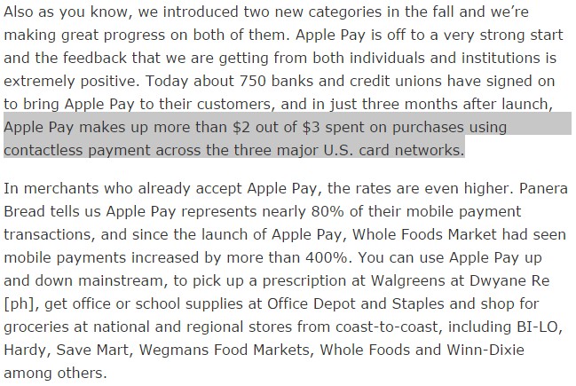 Back to Apple Pay numbers from last night. Relevant bit from Tim Cook on contactless volumes. (Thanks @SeekingAlpha)pic.twitter.com/I2WvtIctgg