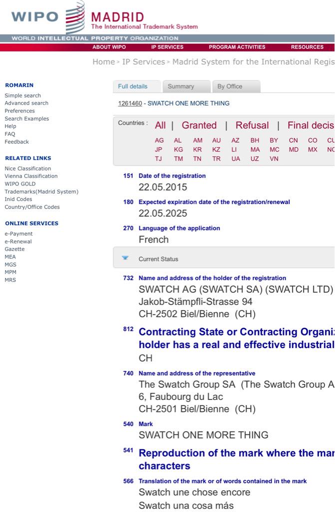 Behold "The one more thing" patent: http://www.wipo.int/romarin/advSearch.do?ID=0&searchString=+/MARKGR/INTREGN+contains+1261460 … Holy smokes Swatch is ultra mad at Apple!pic.twitter.com/MjPdeH1o58