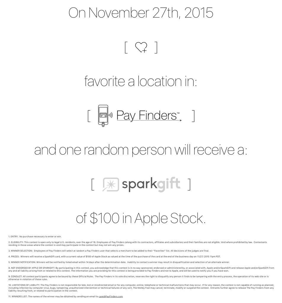 Final hours on the @PayFinders $100 @SparkGift of Apple Stock!