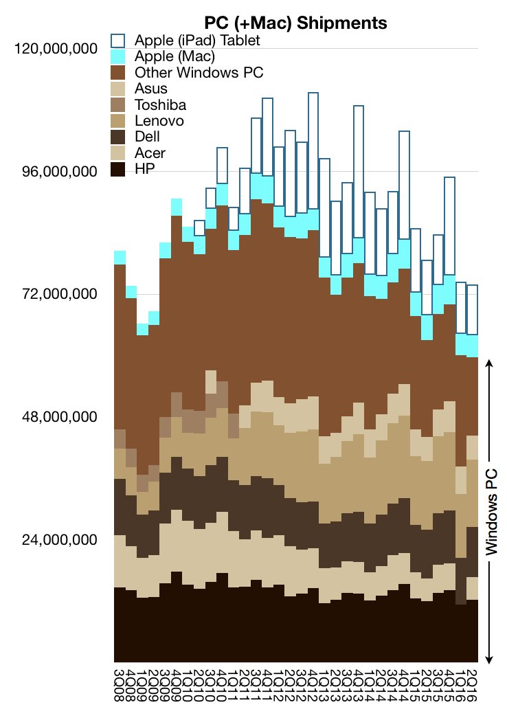 Ever changing redefining of what a computer is. Transition from desktop->laptop->pocket->ephemeral. Sunsetting PC:https://twitter.com/asymco/status/769179539943587840 …