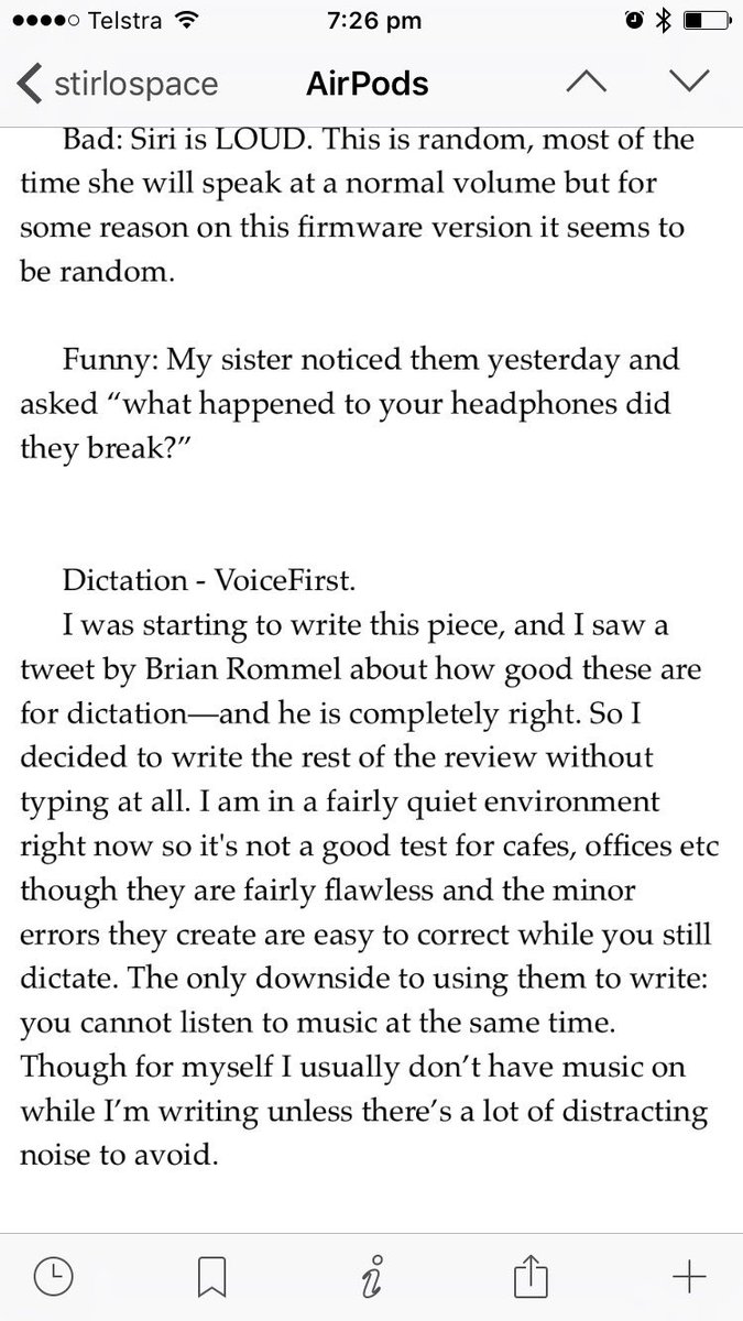 Thought AirPods were overhyped. Completely wrong. Freedom afforded, comfort and quality feels like category breakthrough for headphones.
