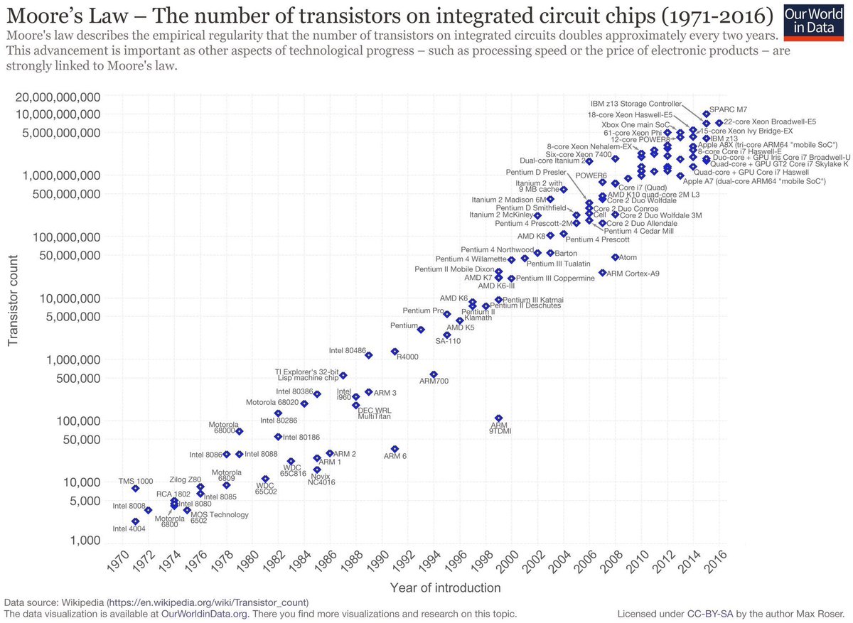 A spectacular presentation of the growth of Moore's Law! I still remember coding in machine language in the 6502...pic.twitter.com/qNHNDWGAzi