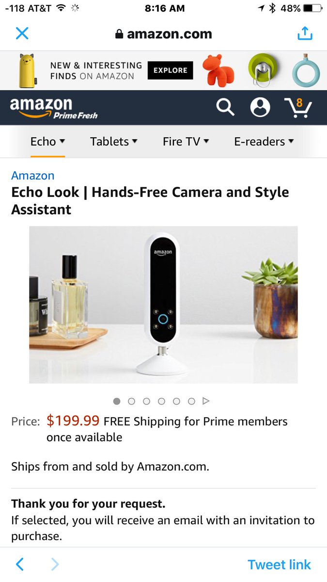 I secured my new Echo Look. It will be in limited supply so jump over now.pic.twitter.com/RloByVBgc9