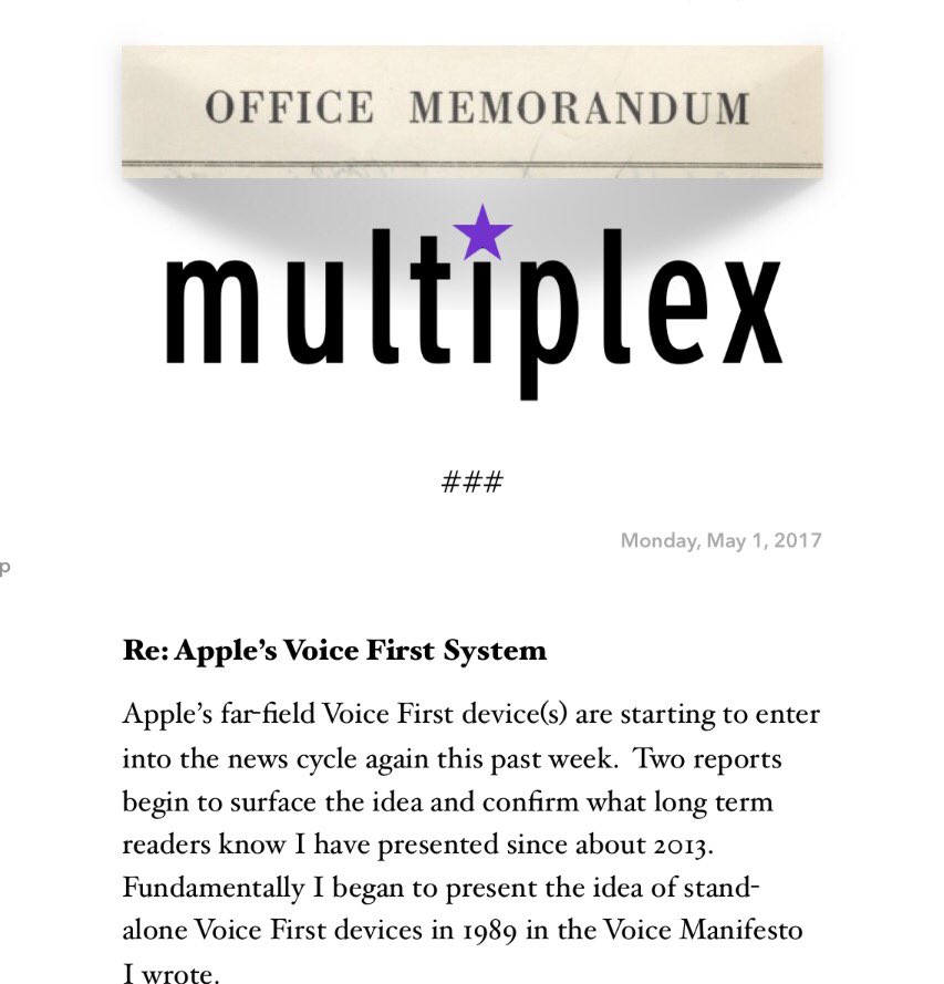Subscribers to Multiplex Magazine got a Memo on The details of Apple's #VoiceFirst device. Did you get the memo?