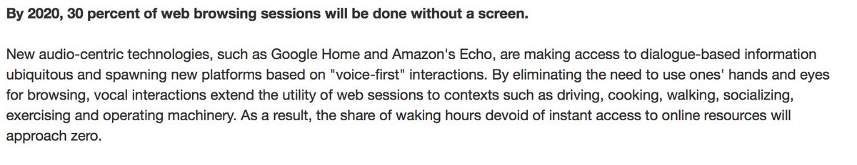 "By 2020 30% of web browsing will be done without a screen—by 2019 20% of brands will abandon their mobile apps”—@Gartner_incpic.twitter.com/TJGBkwJU5T