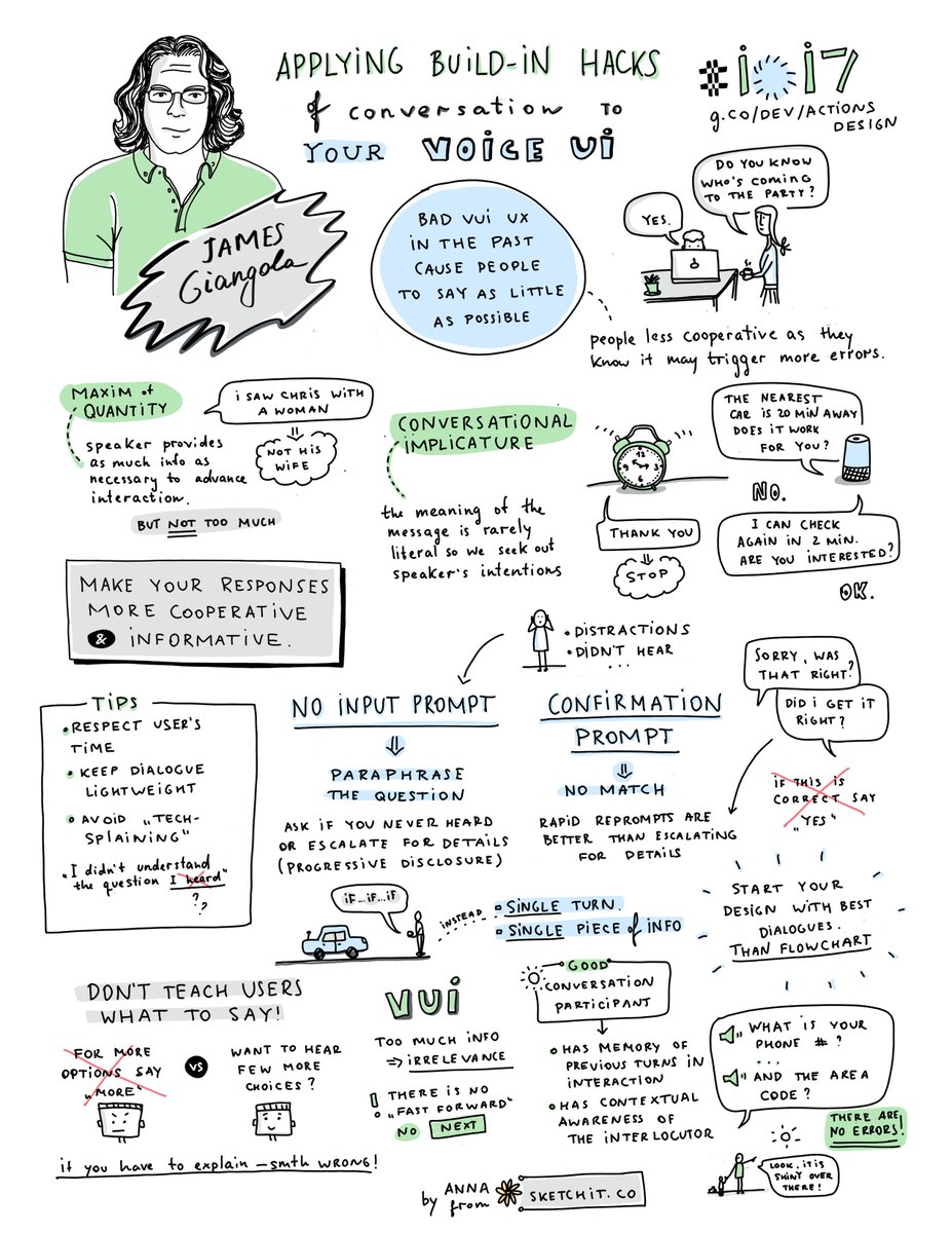 My #sketchnotes of the really valuable session on creating conversational VUI by James Giangola #io17 #vui #VoiceFirst #ux cc @sevenofnanpic.twitter.com/b2waHrAmtB