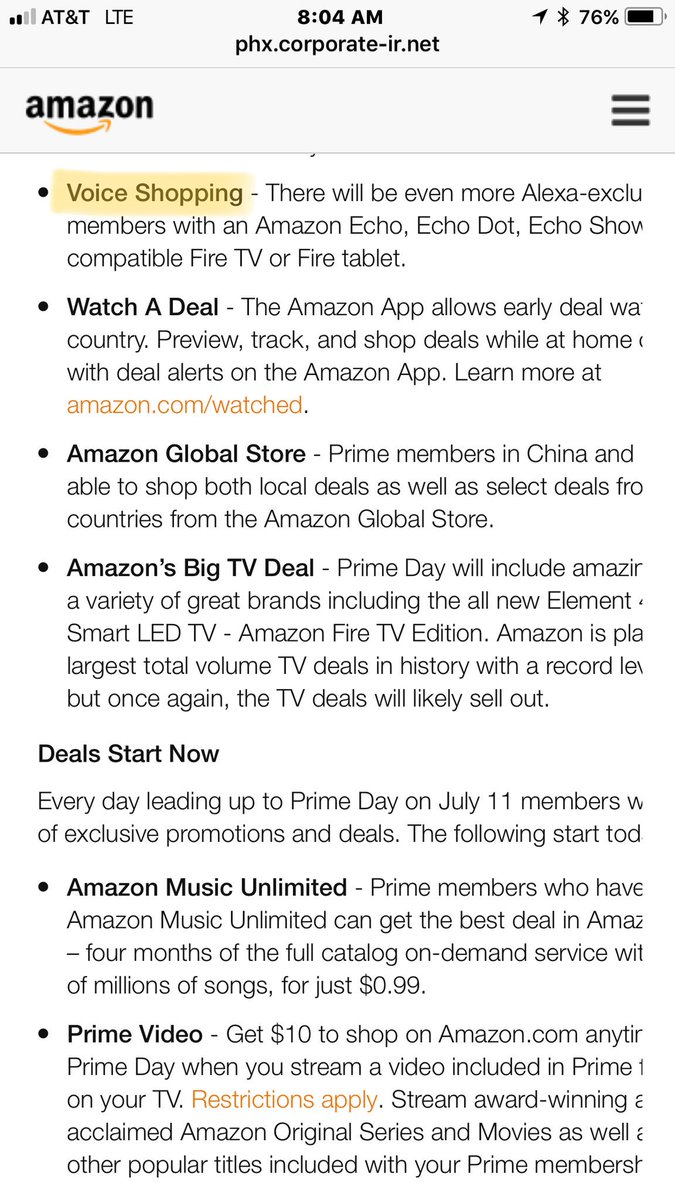 The Alexa platform as shopping systems and coupon: “Voice Shopping- There will be even more Alexa-exclusive deals” http://phx.corporate-ir.net/phoenix.zhtml?c=176060&p=irol-newsArticle&ID=2283864 …pic.twitter.com/lZ0cyJnE5X