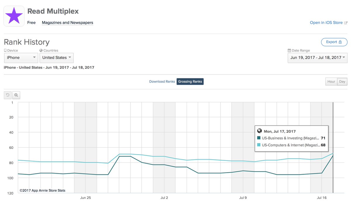 Truly floored you folks made @ReadMultiplex consistently one of the top 100 grossing apps in the category at the iOS app store.