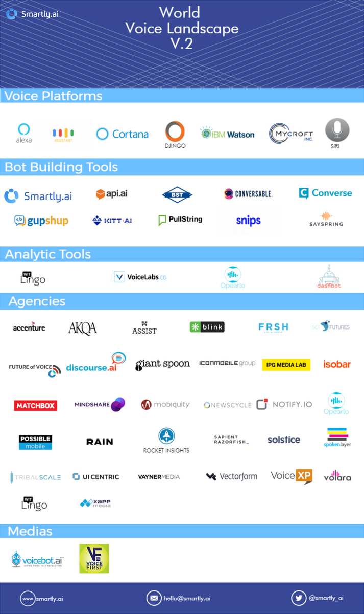 #VoiceFirst Chorus getting louder. Shout out to: @WitLingo @VoiceLabsCo @OpearloVoice @VoiceXPInc @Voicebotai @VoiceFirstFM #VoiceCommercehttps://twitter.com/smartly_ai/status/903544354303877121 …