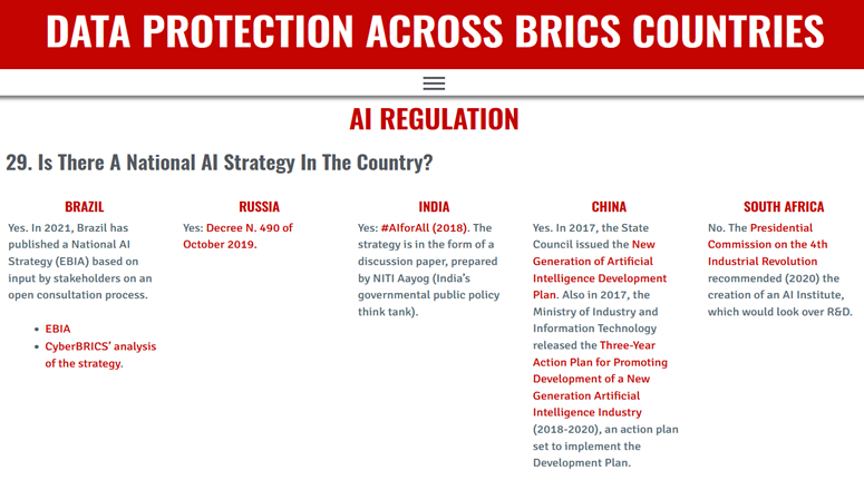 #DataProtection across#BRICS Countries, which now also includes an additional section on#AI Regulations in#Brazil#Russia#India