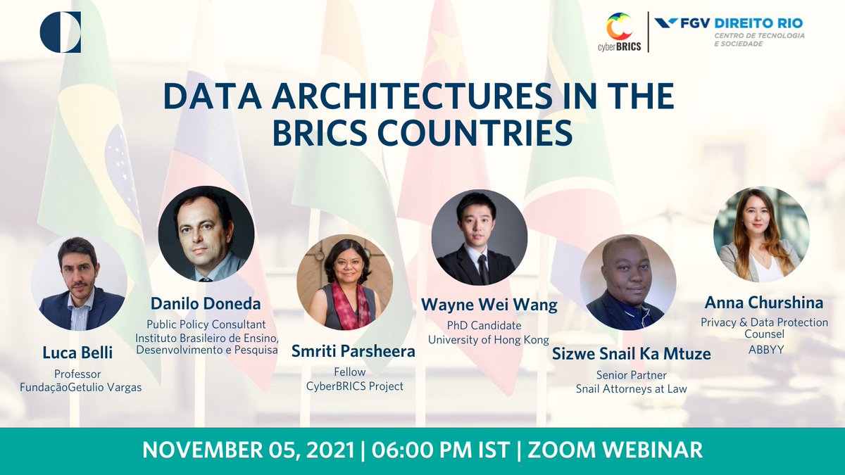 @CarnegieIndia, "Data Architectures in the BRICS Countries", will take place tomorrow, Nov 5.@1lucabelli,@ddoneda,@SmritiParsheera,@weiwanglaw, Sizwe Snail Ka Mtuze & Anna Churshina will discuss cooperation and policies. https://cyberbrics.info/data-architectures-in-the-brics-countries/ …pic.twitter.com/UvUgPpEgZX