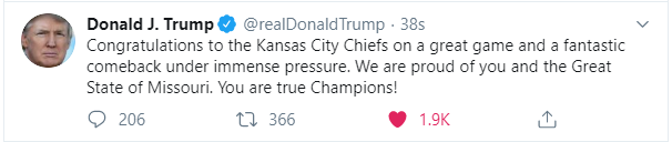 He said the Chiefs represented the great state of Kansas. They are from Missouri.