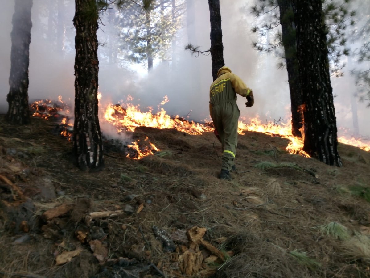 #EPRIF Puntagorda+#BLP@BrifPuntagorda realizan quema prescrita bajo arbolado de Pino canario para reducir la gran acumulación de hojarasca, creando así zonas de baja carga de combustible que nos ofrecerán zonas de oportunidad para detener posibles#IIFF.#GoodFire