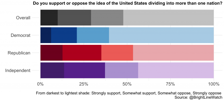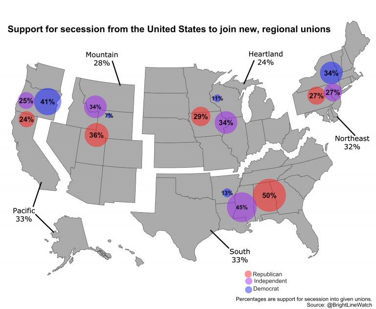 When presented with a proposal for their region to secede from the US, almost 1 in 3 Americans (29%) are willing to entertain the prospect. Rs (33%) support secession more than Ds (21%), but Ds are more amenable to secession than Rs where they hold power. http://brightlinewatch.org/american-democracy-at-the-start-of-the-biden-presidency/ …pic.twitter.com/0q2dbcmqZU