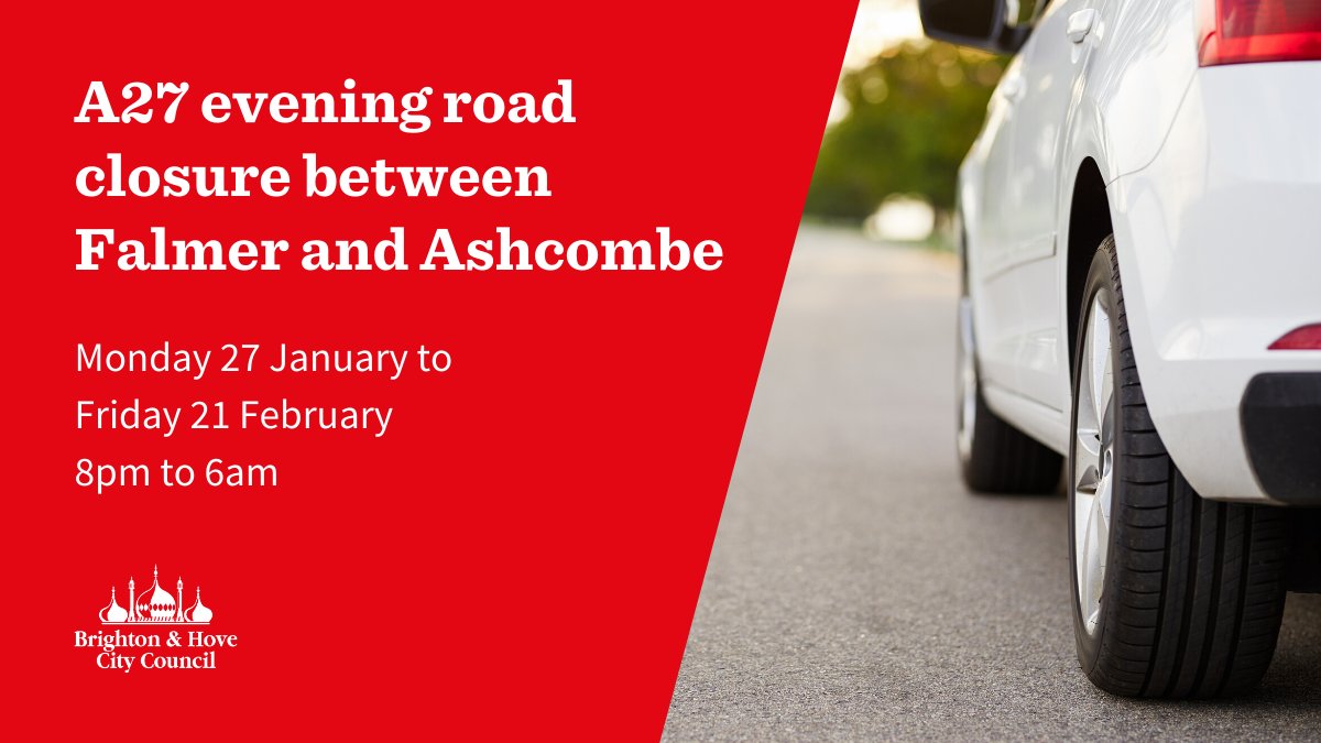 The A27 will be closed on weekday evenings between Falmer and Ashcombe Roundabout while work takes place to address dangerous trees. Full east & westbound closures will be in place between 8pm and 6am until Friday 21 February. A diversion will be in place.pic.twitter.com/a5AnPJV3Nd