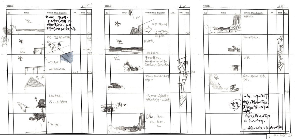 ちょっと前にゲーム絵コンテの件を書きましたが、一部切り取りのサンプルです。自機や敵のデザインが決まっていない時期のものなので、一瞬「?」となるかもしれませんが…恐らくプレイしてくれた人はどのシーンか分かると思います。アイディアが固まったら即描いていく感じでした。pic.twitter.com/y1Y4UOs6E9