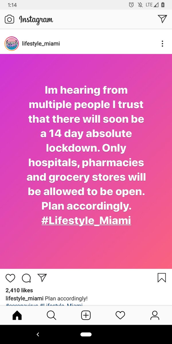 Time to add a Miami lifestyle page with over 750,000 followers on Instagram to the list of people and accounts spreading these rumorshttps://twitter.com/__SteveG/status/1239600972260835328 …