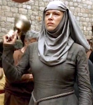 Outside Dodger Stadium: The "Shame!" woman from Game of Thrones, before the Astros bus shows up