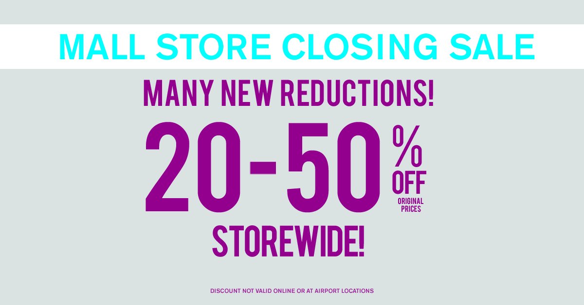 Many new arrivals, Many new reductions! Now you’ll save 20-50% off original prices of all your favorite things. Online or airport purchases excluded, see a store near you for complete details. http://bit.ly/2whDtF3 pic.twitter.com/PKE6qFxnr8