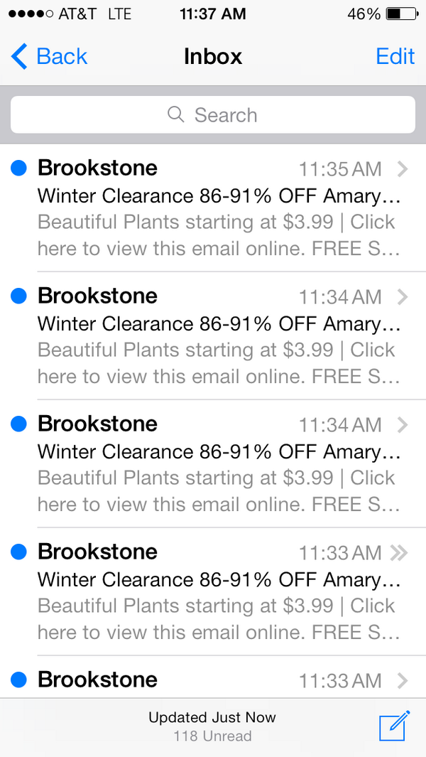 I've gotten over 60 emails from @brookstone since 9am & their unsubscribe feature isn't working.pic.twitter.com/XdiSZLIeM1