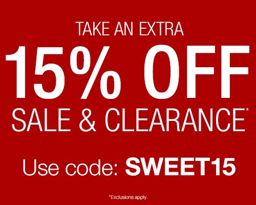 Not just 15% off... EXTRA 15% off Sale and Clearance.... http://bit.ly/1TZq6R6 pic.twitter.com/yuheFgGKLL